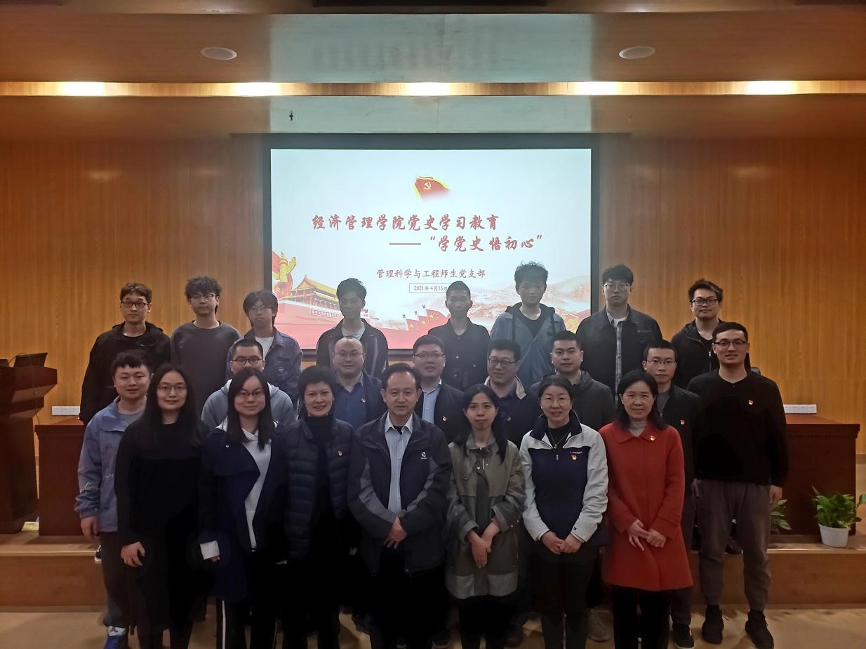(通讯员:倪兴华)为深入贯彻落实党中央要求,迎接中国共产党成立一百周年,4月16日上午,365英国上市网站官网管理科学与工程系师生党支部在未来城校区经管楼一楼报告厅,组织开展“学党史、悟初心”党史学习教育活动。学院党委书记杨昌锐,副院长王广民,老党员帅传敏教授,以及管科系师生党支部100余名师生参加。我校马克思主义学院党史讲课团成员张牛美博士应邀作专题报告。管理科学与工程系教职工党支部书记孙涵主持报告会。