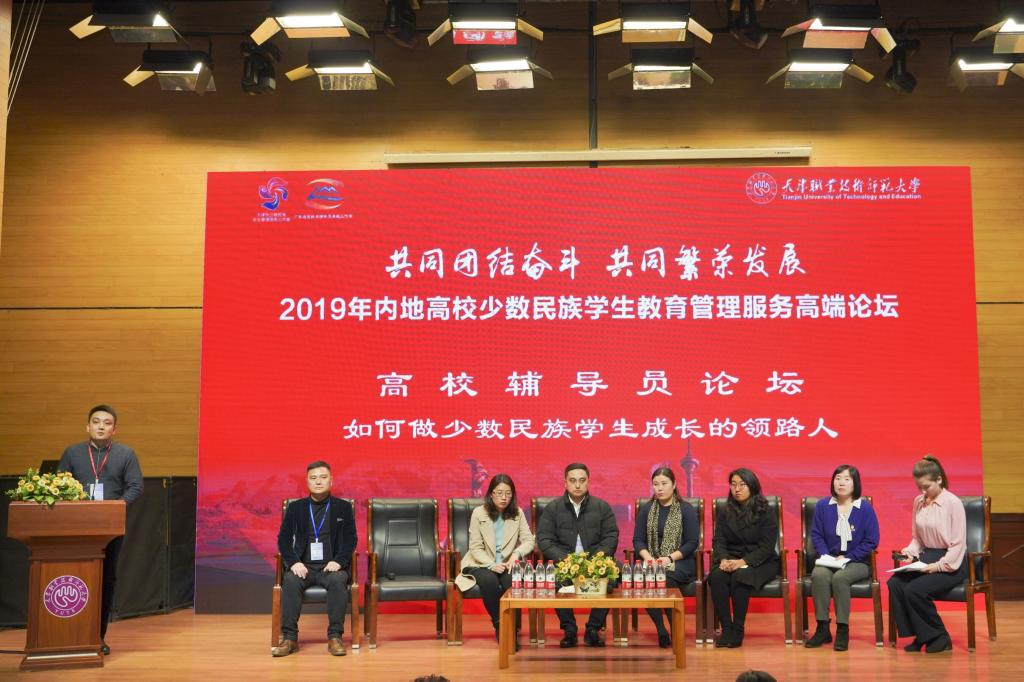 近日,2019年内地高校少数民族学生教育管理服务高端论坛在天津举行,本次论坛主题为“共同团结奋斗 共同繁荣发展”,来自全国109所高校的400余名专家学者、统战部部长、学工部部长、少数民族专职辅导员参加论坛。天津市委常委、统战部部长冀国强,教育部民族教育发展中心副主任胡炜,广东省委教育工委副书记、省教育厅党组副书记李大胜等出席开幕式并讲话。365官网辅导员努尔夏提·居勒提受邀参加论坛并发言交流。